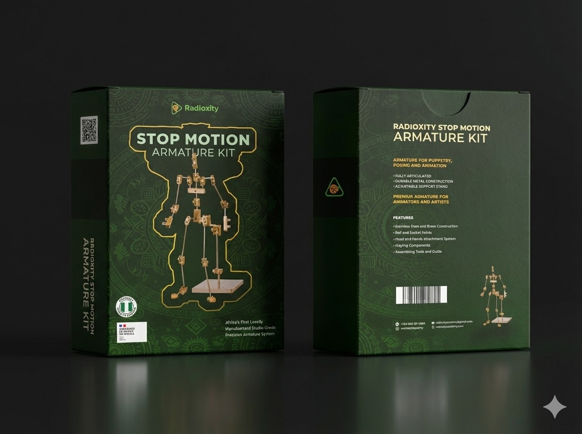 We are excited to announce the forthcoming launch of the Radioxity Stop Motion Armature Kit, Africa’s first, locally manufactured, studio-grade precision armature system built from stainless steel and machined brass blocks with silver-soldered construction. The kit includes a fully assembled armature, rigging arm, spare joints, and a beginner’s assembly and maintenance guide — designed for animators, film studios, and educational programmes.